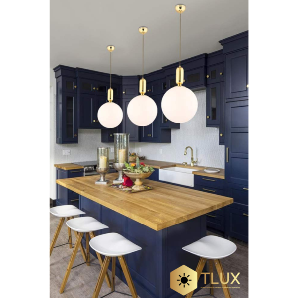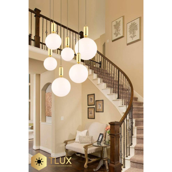 Gold Plated Bulb Holder with Milky White Round Glass Ball Pendant Light Fixture